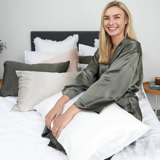 Indulge in the ultimate comfort and beauty benefits of a 100% mulberry silk pillowcase. The smooth, breathable fabric reduces friction against your hair and skin, helping to Minimize sleep wrinkles and bedhead by gently gliding against your skin throughout the night.
