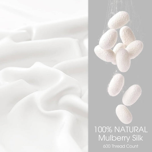 Natural Silk Pillowcase for Hair and Skin with Envelope Closure Soft Breathable Pillow Covers Smooth Cooling - White