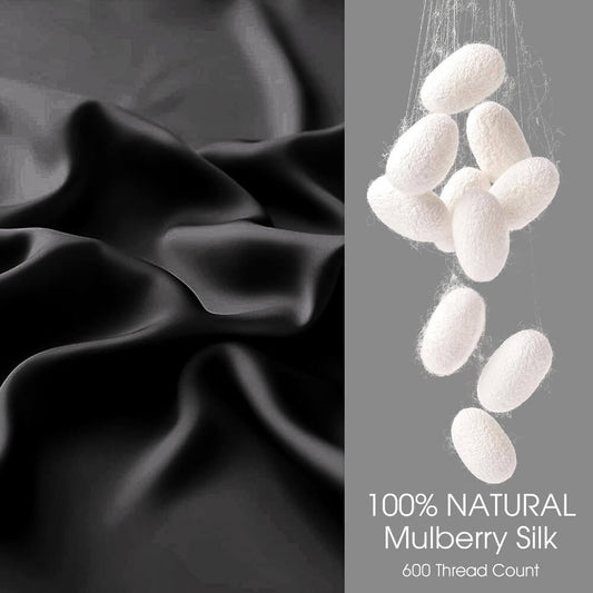 2 Pack Silk Pillowcase for Hair and Skin 100% Mulberry Silk Pillow Case 22 Momme 6A Grade with Envelope Closure - Black