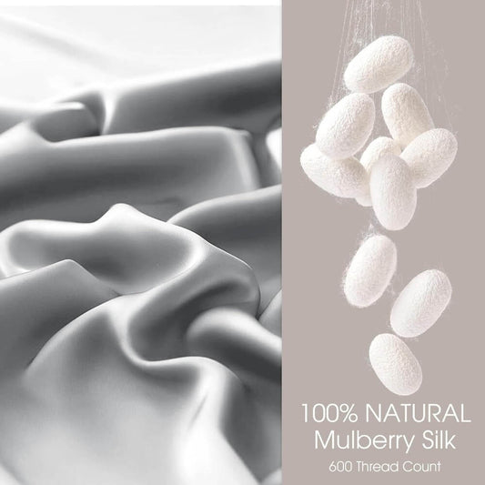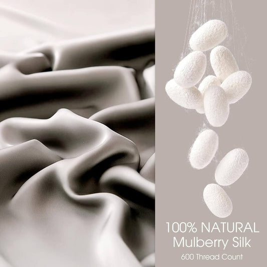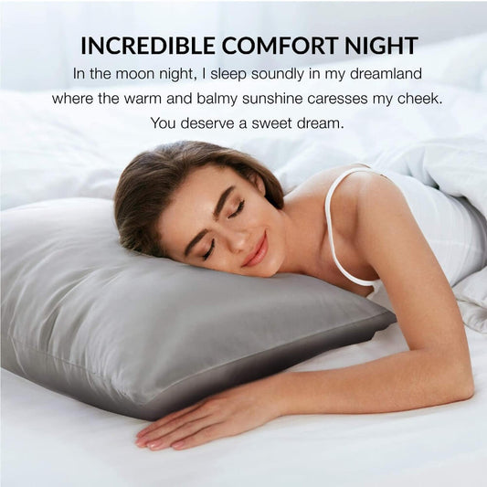 Natural Silk Pillowcase for Hair and Skin with Envelope Closure Soft Breathable Pillow Covers Smooth Cooling - Light Grey