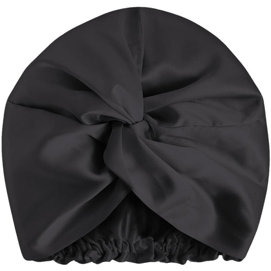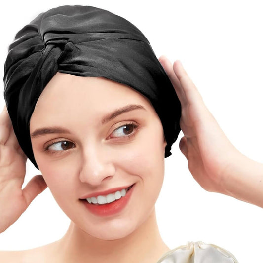 100% Premium Mulberry Silk Bonnet for Healthy Hair Silky Soft Sleep Cap Double-Sided Frizz-Free Moisture Retention - Black