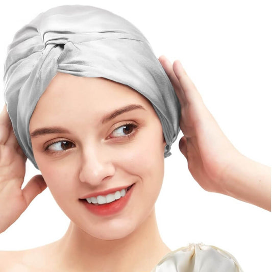 100% Premium Mulberry Silk Bonnet for Healthy Hair Silky Soft Sleep Cap Double-Sided Frizz-Free Moisture Retention - Silver Grey