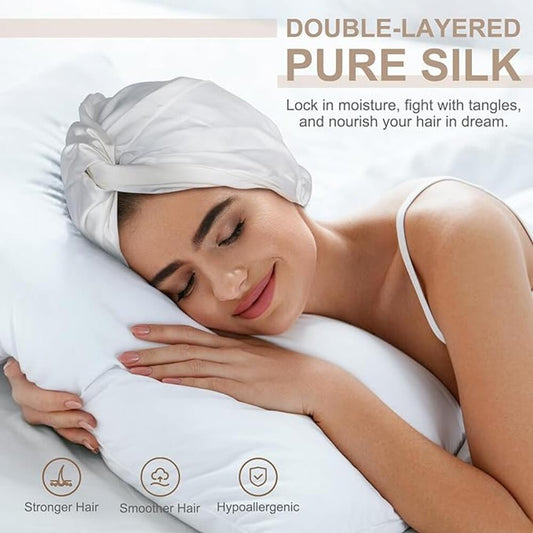 100% Mulberry Silk Bonnet for Hair and Skin Sleep Cap Natural Silk 22 Momme with Elastic Band