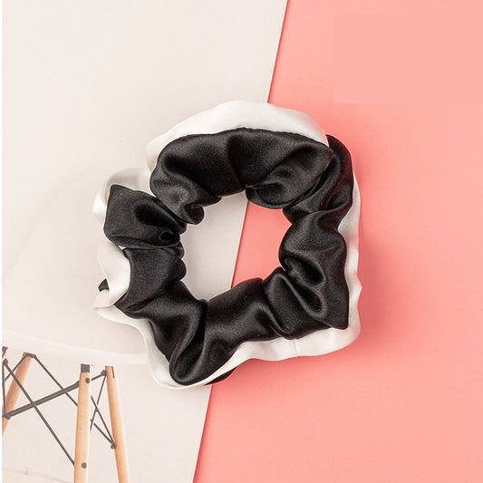 Silk Hair Scrunchies with White Trim Large Elastic Hair Ties Ponytail Holder